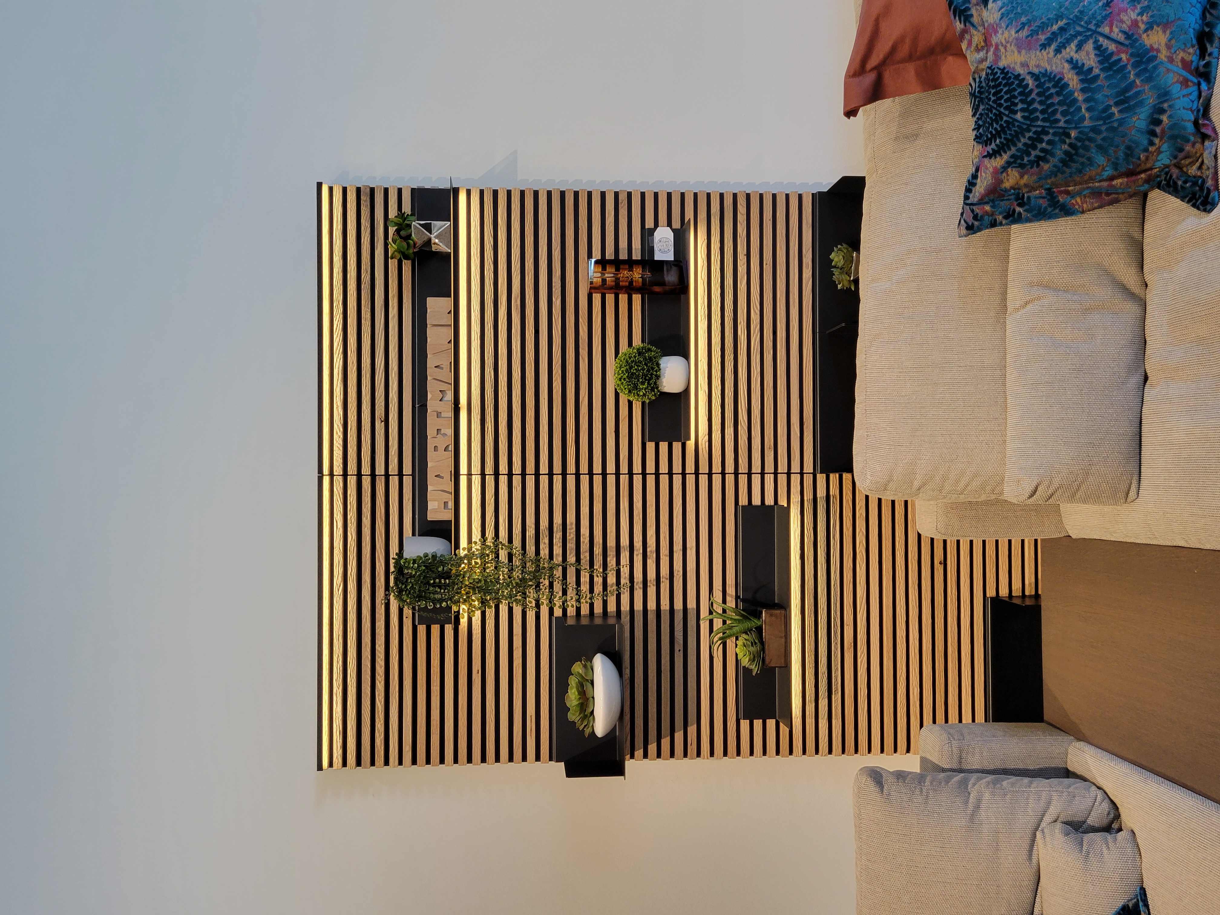 Yonna Wall Shelves, LED Lights, 2x Panels & 6x Shelves ; Finish: Solid Natural Oak w/ Anthracite Metal Shelves ; Dimensions: W30 3/8" x H78 3/4" x D10 1/4" EACH ; Email: info@planumfurniture.com if you are interested