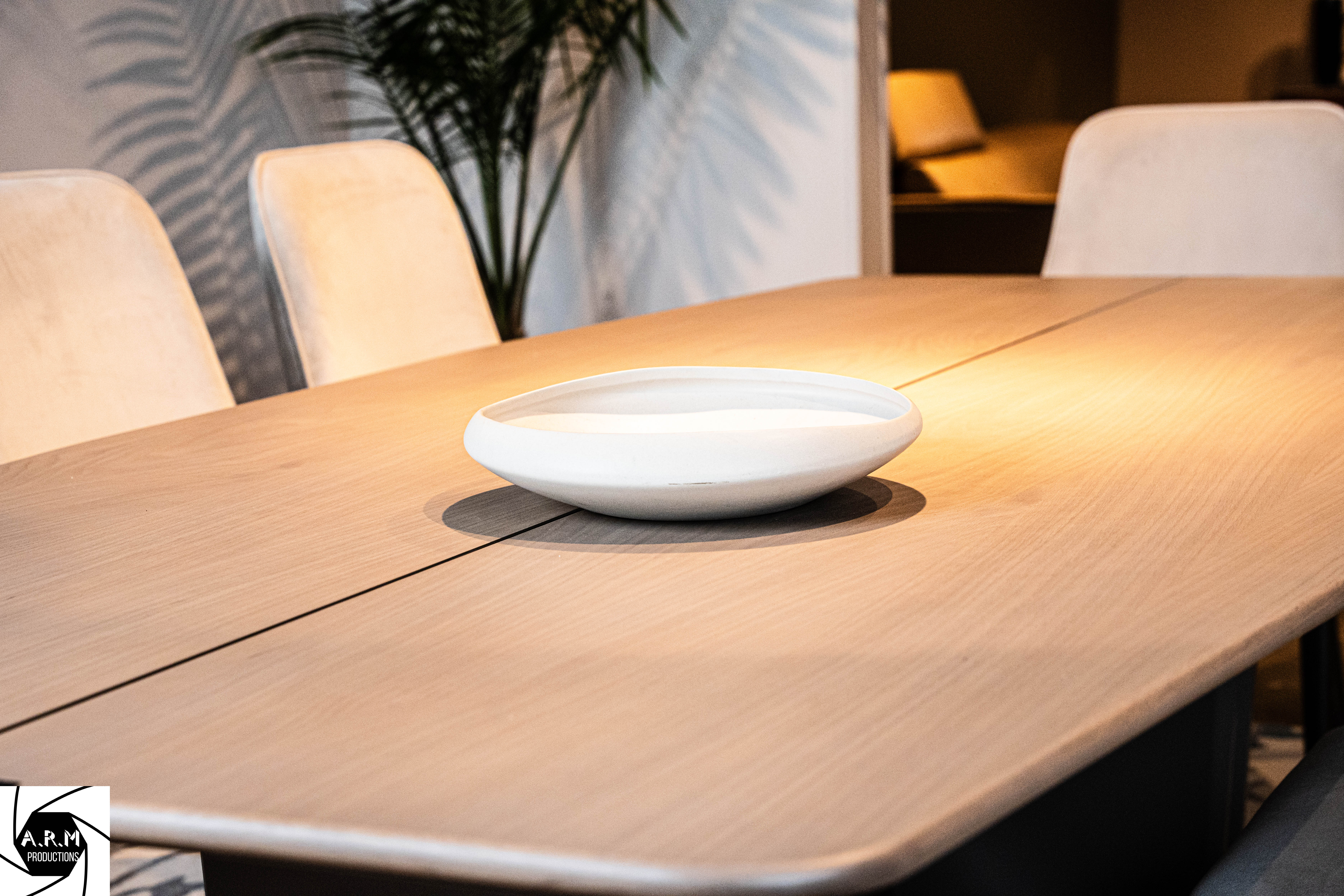 Finish: CV26 Light Oak w/ Metallic Gray Lacquer Base Accents & Metal Nickel Noir Accents on Top;