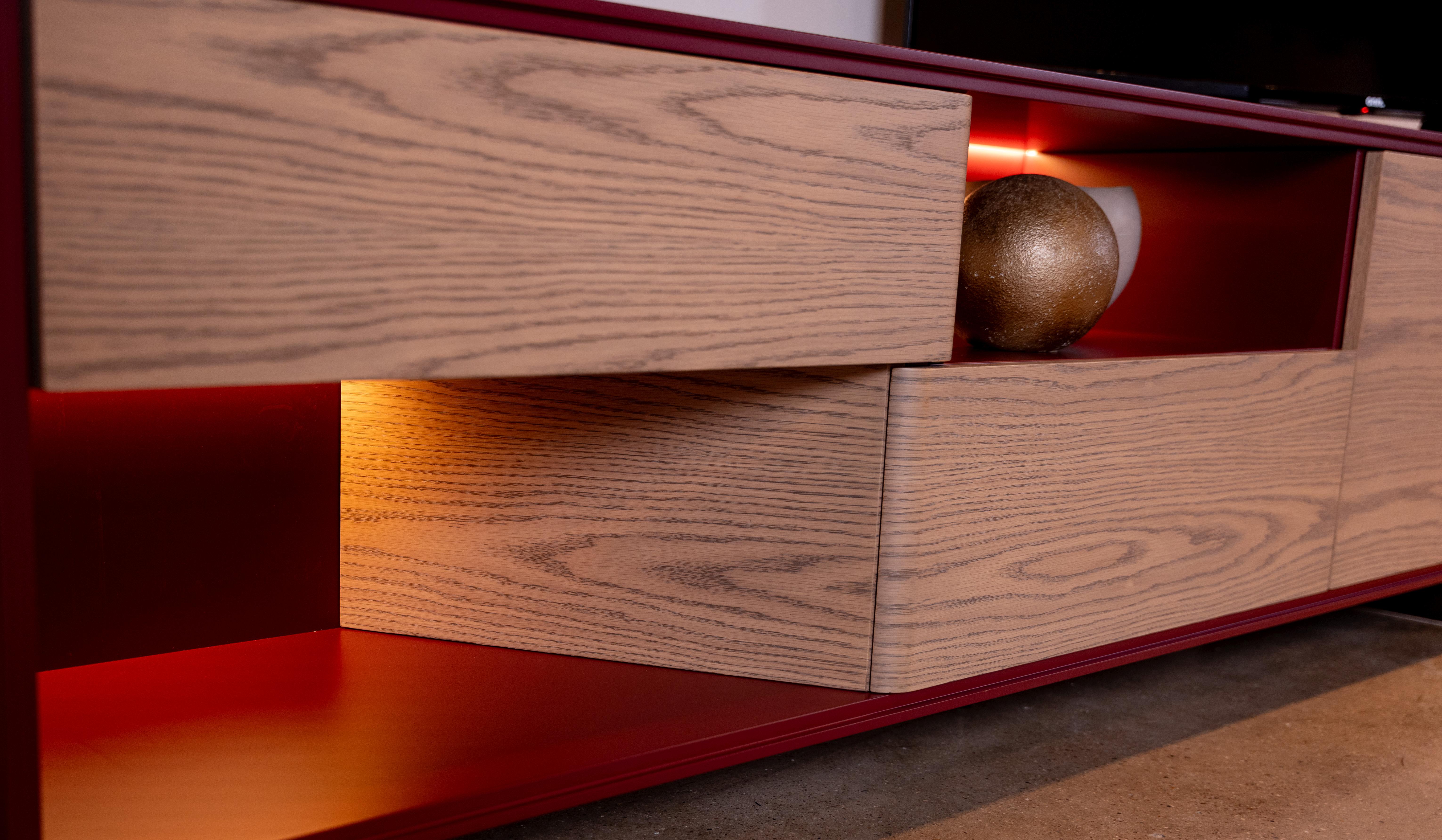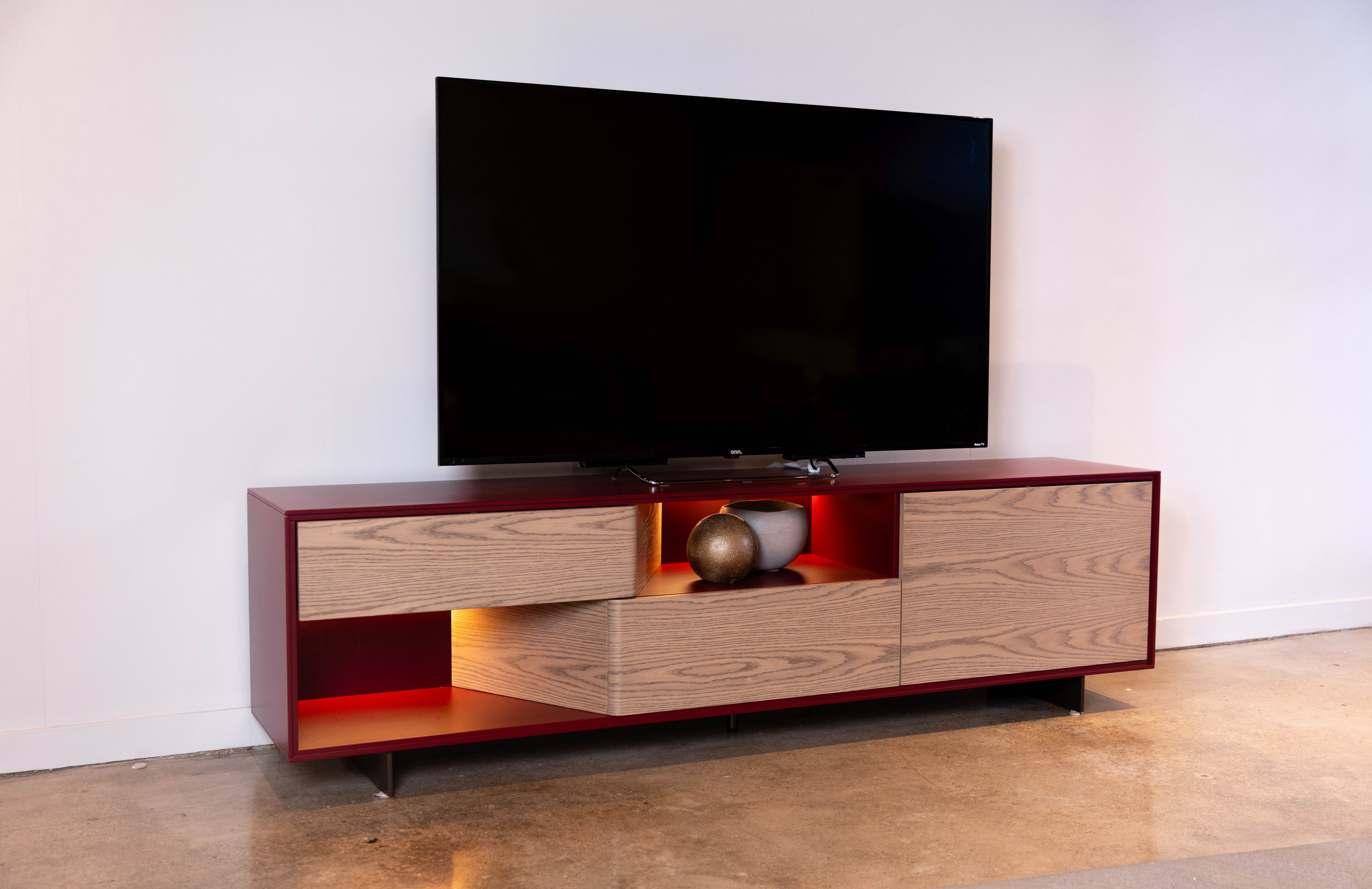 Finish: Case in Merlot Lacquer w/ Fronts in Fog Oak & Bronze Legs ;