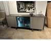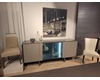 Finish: Top, Sides, Legs in CV16 Oak, Fronts in CV09 Oak, Interior in Metallic Gray Lacquer w/ Grey Glass & Brushed Stainless Steel Accents ;