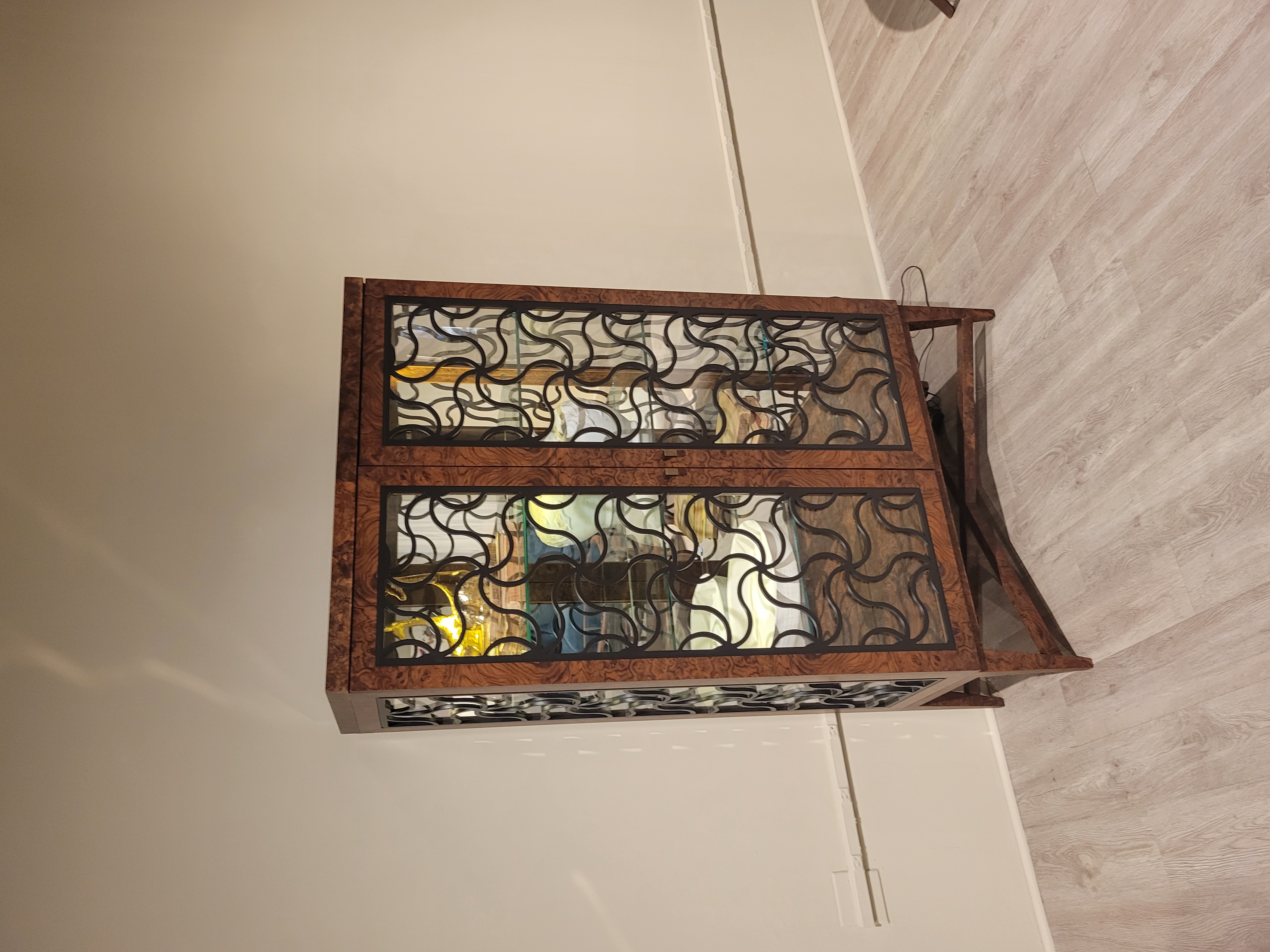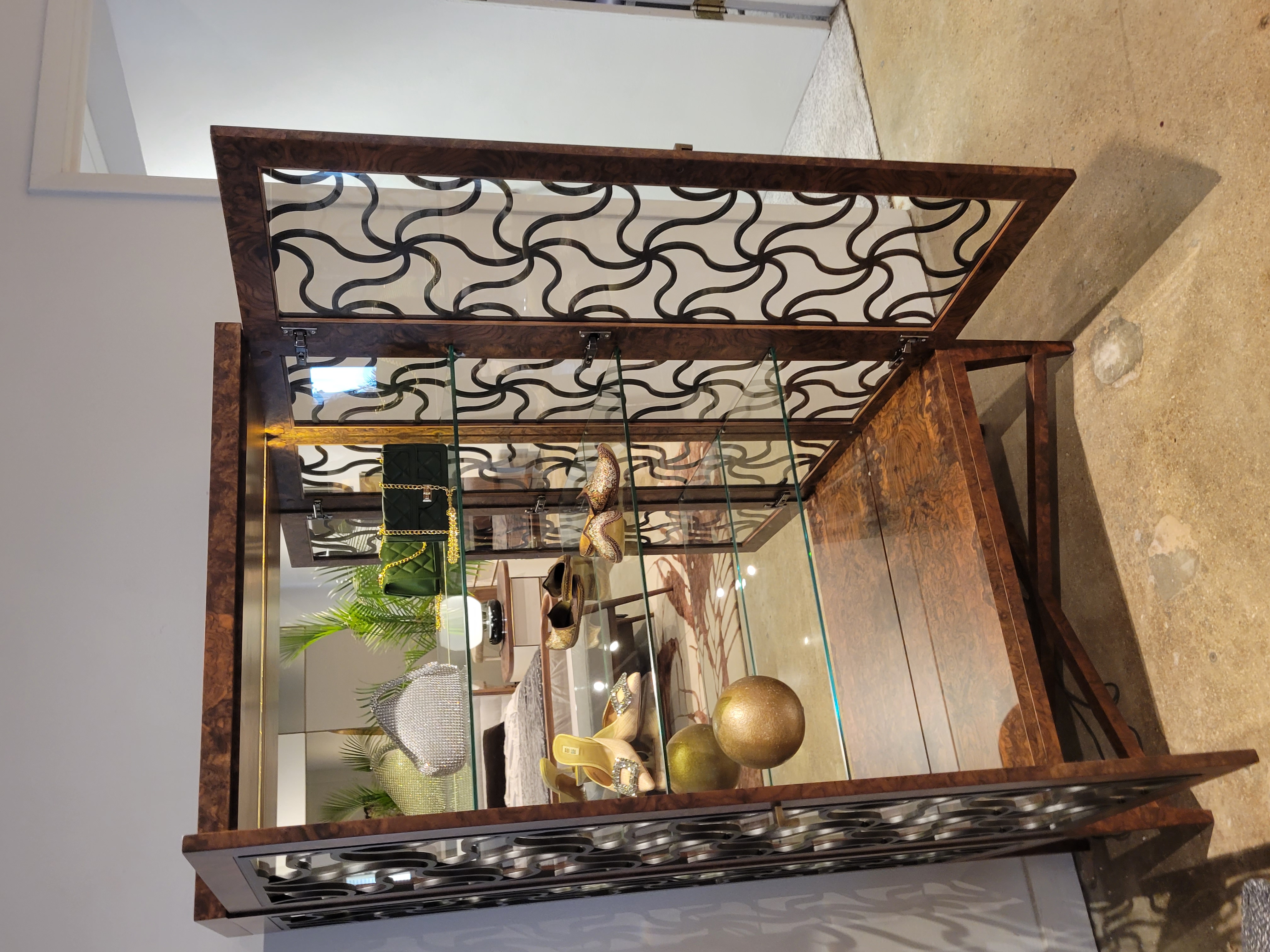 Alhambra Vitrine Cabinet, Glass Shelves & Mirrored Back ;