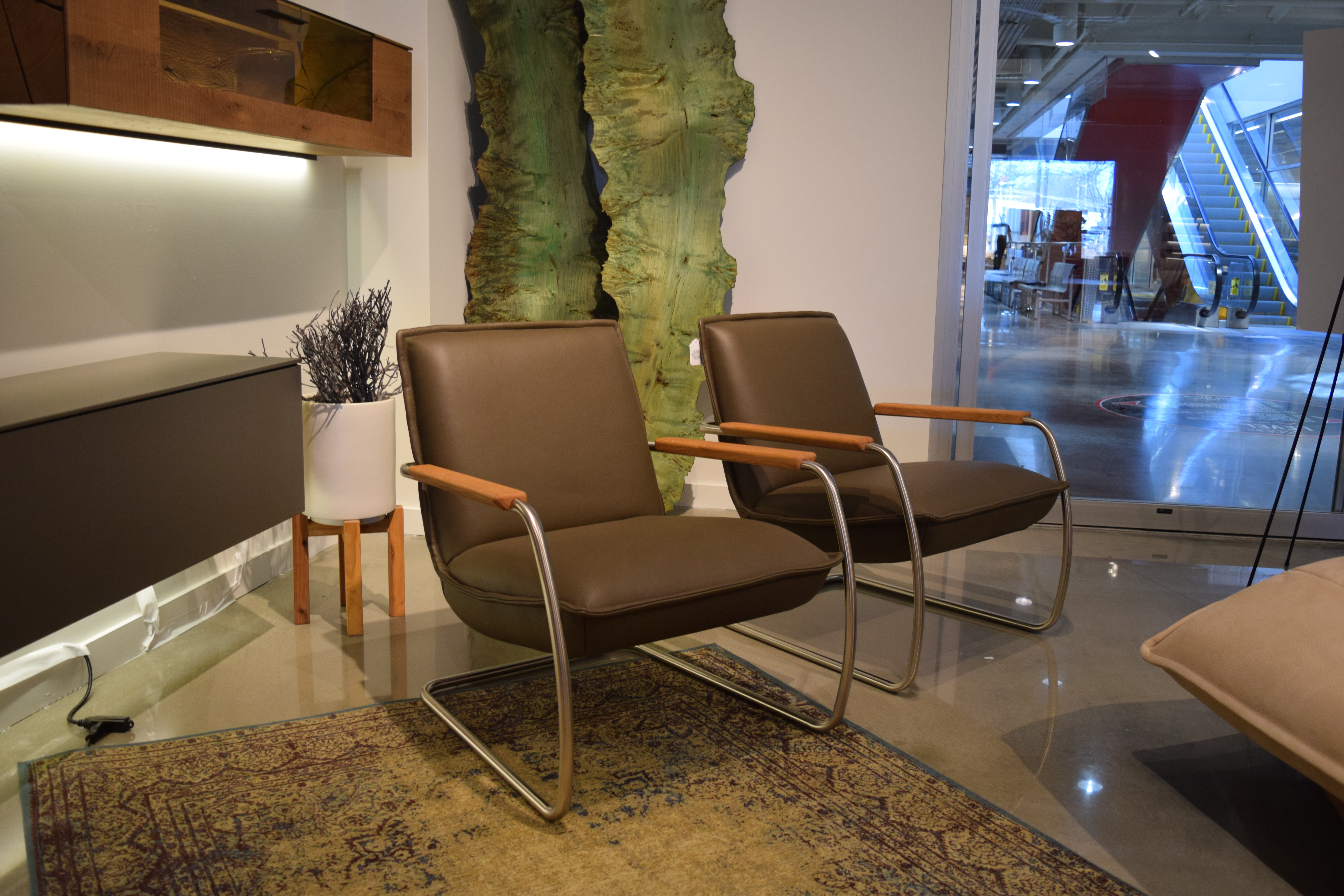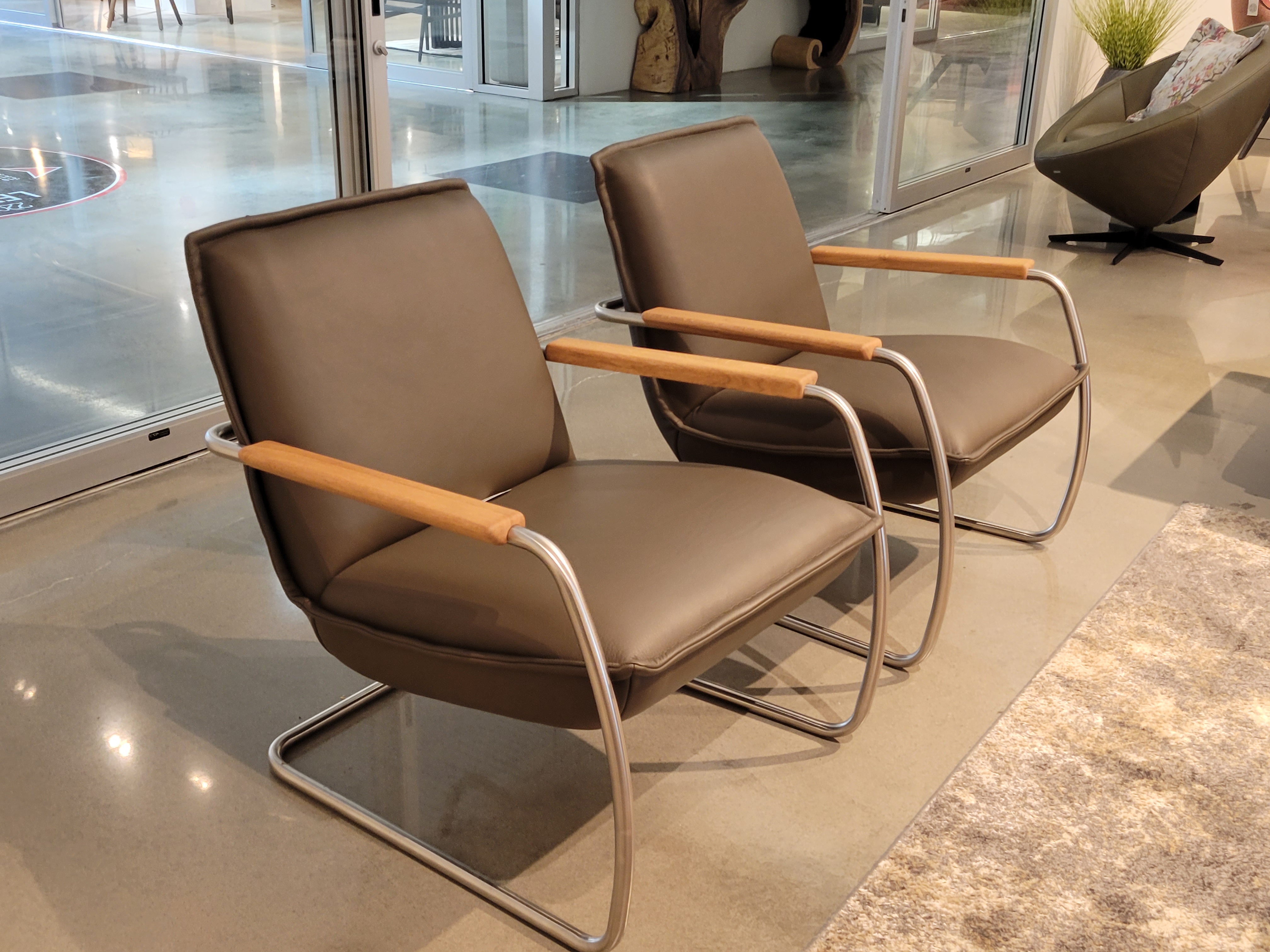 Finish: Leather G-Glory Truffle w/ Wild Oak Arms & Stainless Steel Legs ;